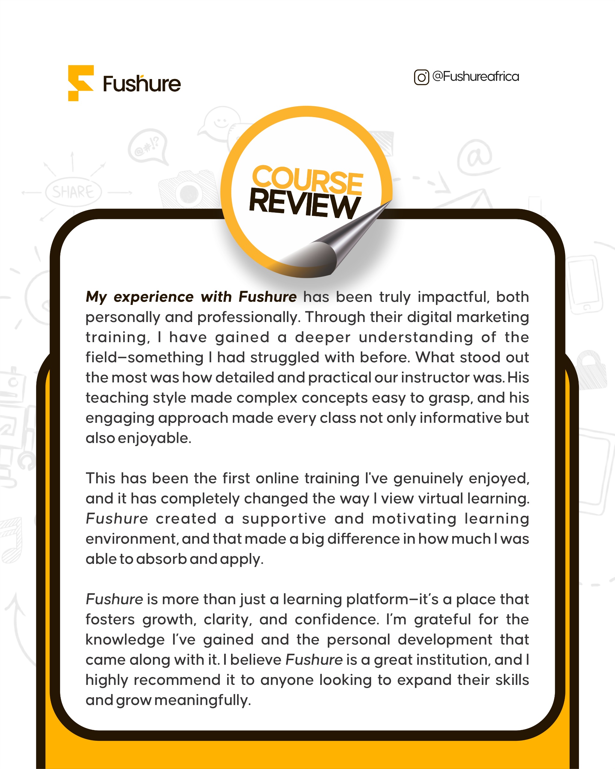 I was a beginner, didn’t even know what tech was until I came across Fushure. I had paid huge amounts on other platforms but with Fushure, I never regretted my decision learning with Fushure. Fushure is real, kept all their promises.